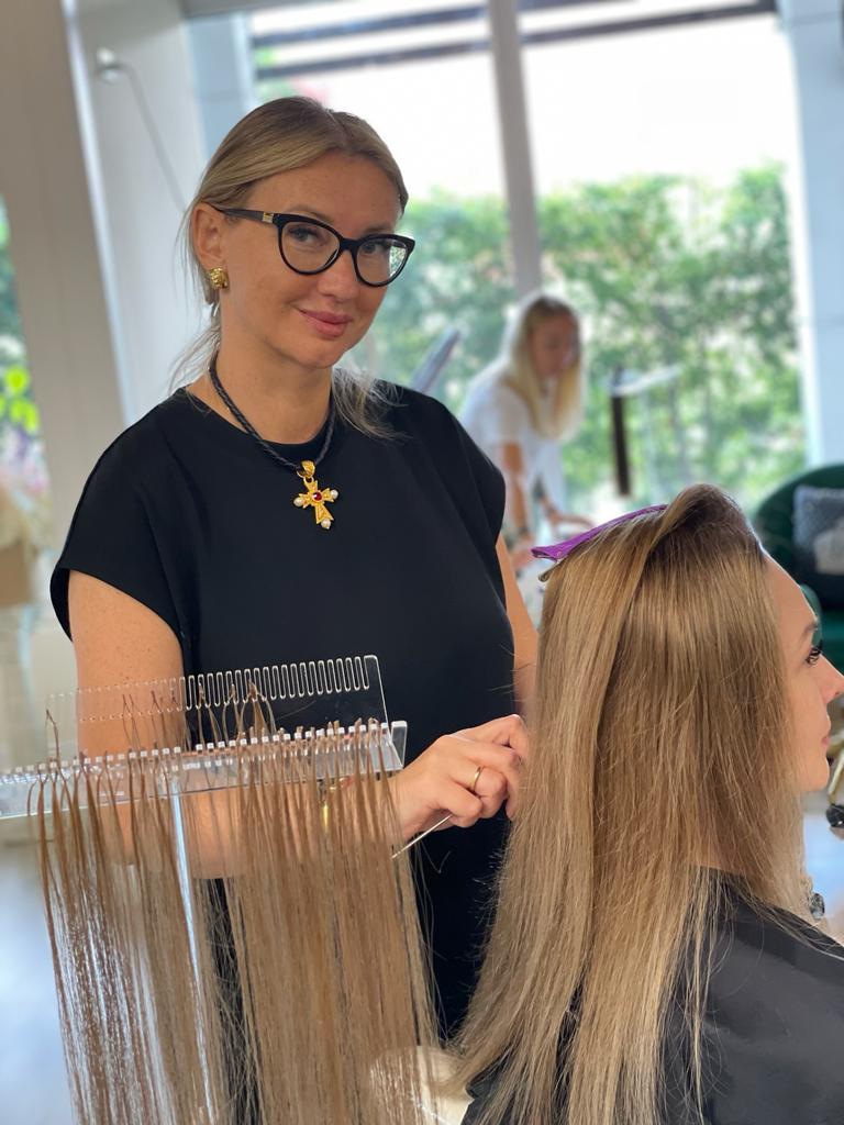 Maria is the creator of her own techniques for complex hair coloring. She became the first who combined the complex coloring methods with the technique of inconspicuous hair extensions.